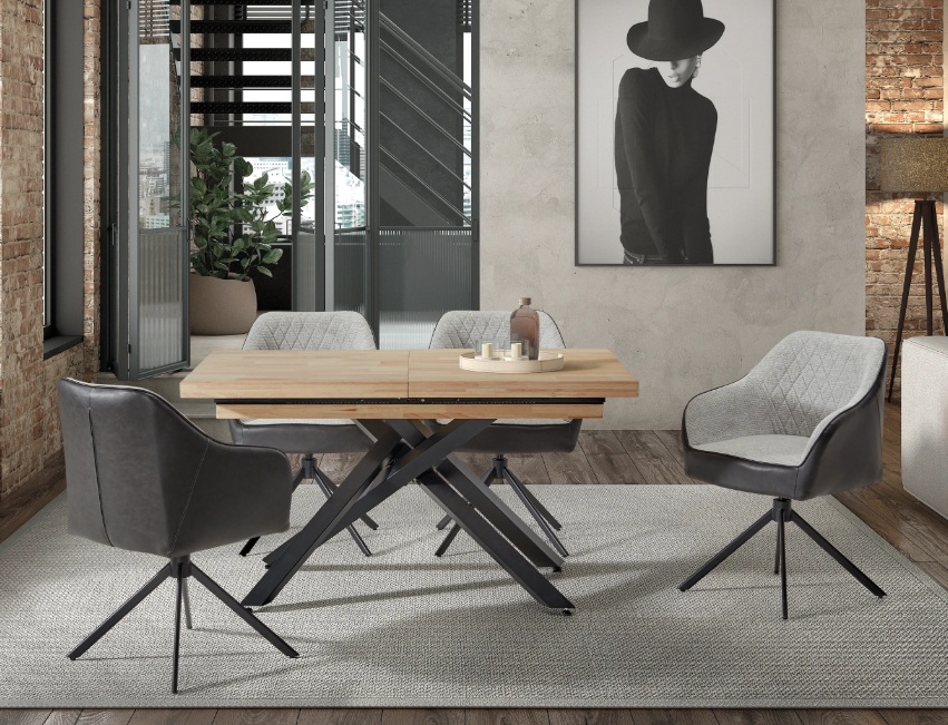 La mesa Xena Ext ofrece una solución robusta y elegante para comedores que requieren funcionalidad sin renunciar al diseño. Su estructura metálica en acabado mate se combina con un sobre de madera maciza lacada de 50 mm. Dispone de un sistema de apertura telescópica sincronizada con dos extensiones independientes de 40 cm, que se almacenan cómodamente en el interior. Incluye cierre de seguridad y patas con tacos reguladores para mayor estabilidad.